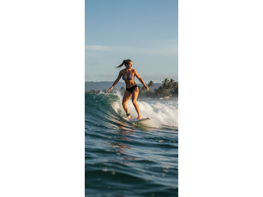 Navrženo pro pohodlí, pohyb a ženský tvar – spodní díl drží i ve vlnách, horní je pevný a přizpůsobivý. Autorský design, česká výroba.